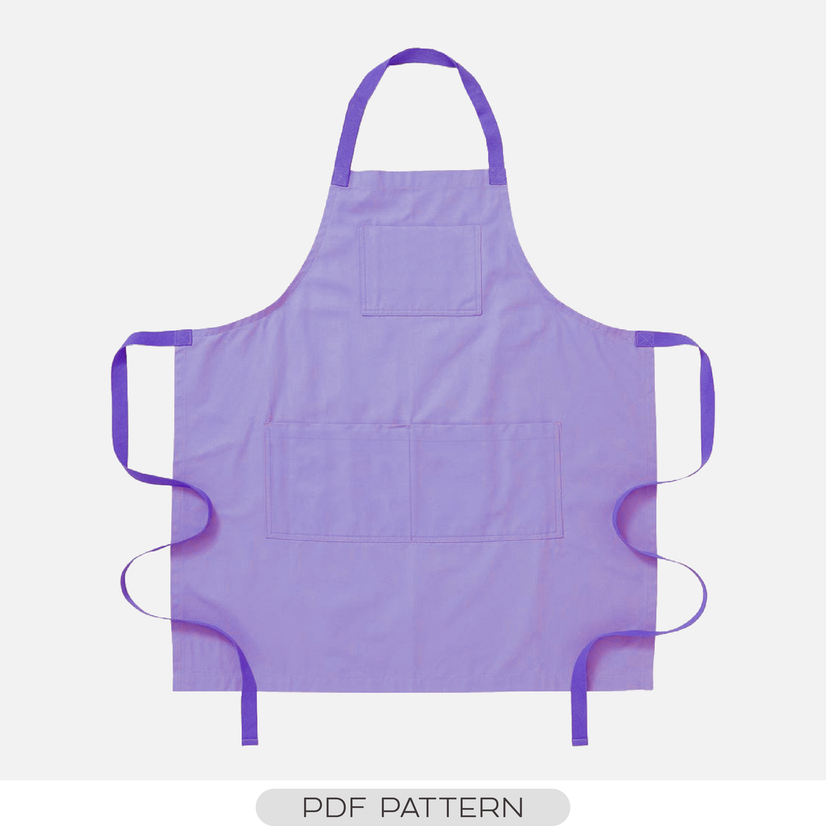 Simple apron sewing pattern. This design has classic fit and pattern can be used to make kitchen or workshop apron. Excellent option for DIY gifts!