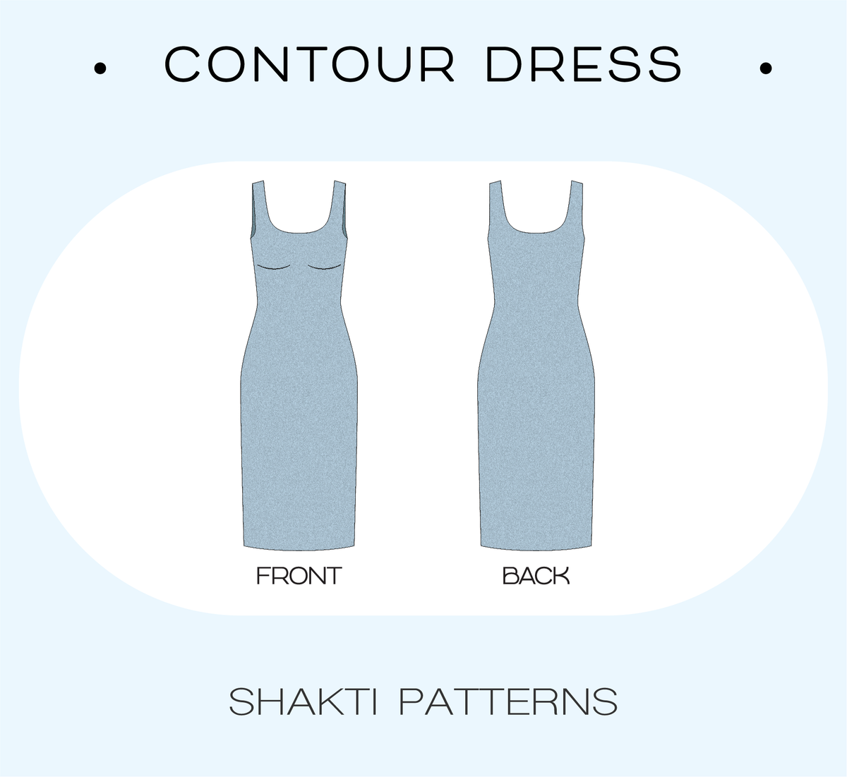 CONTOUR Midi Dress Sewing Pattern, 8 Sizes XS-4XL, Instant Download