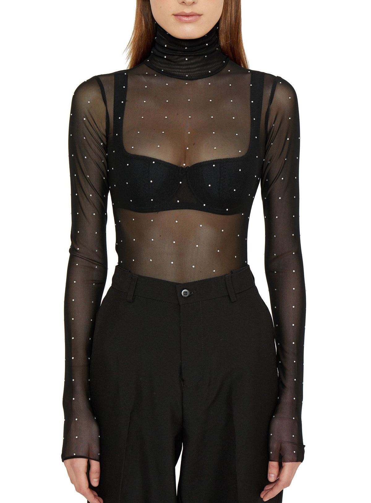• You can go for almost any 4 way stretch fabric. I recommend lightweight stretch power mesh for a style like that, you can also use heavier weight fabrics 220-280 GSM polyester and spandex blend, jersey, 4 way stretch cotton.